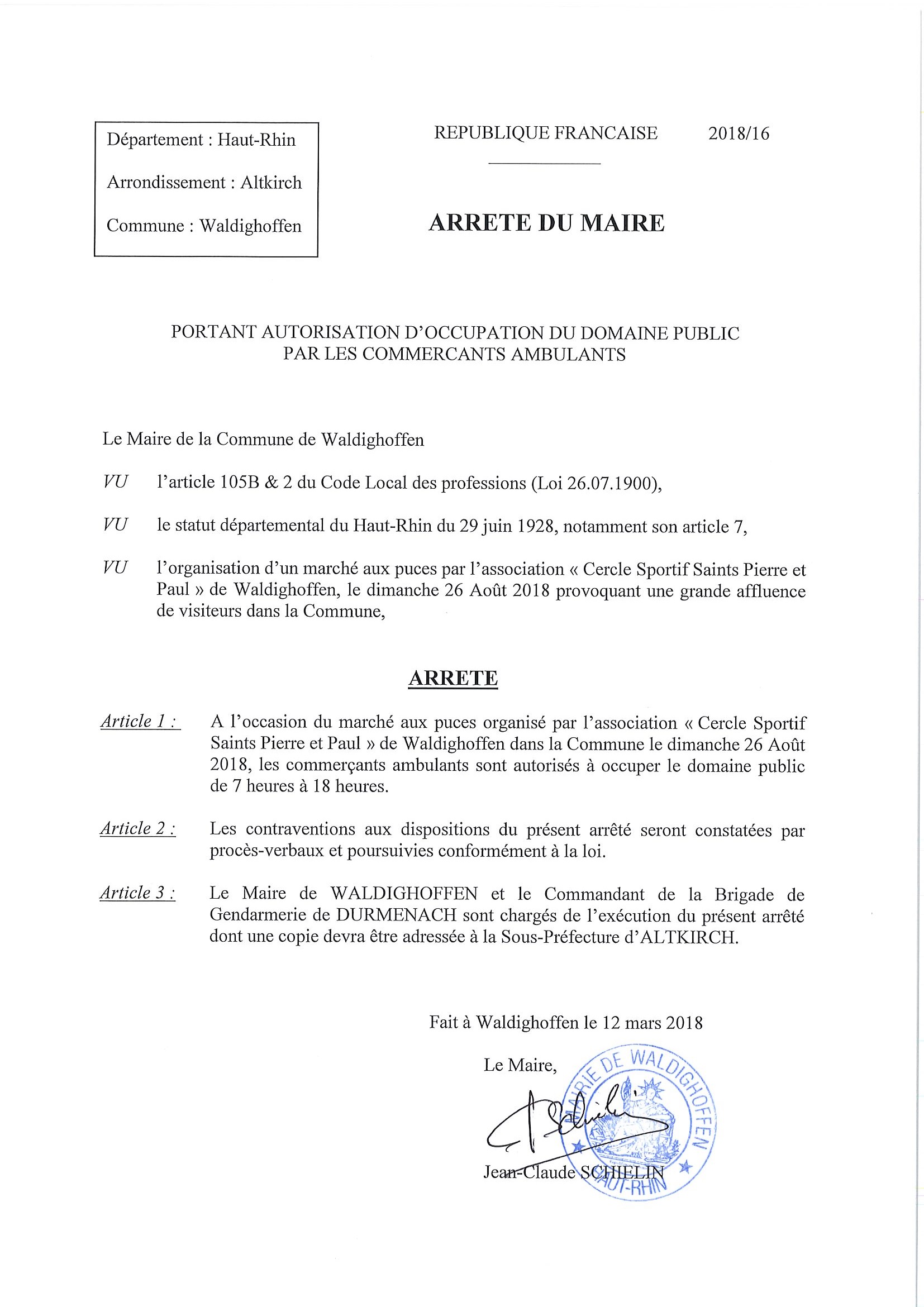Autorisation exceptionnelle d'occupation du domaine public par les commerçants ambulants