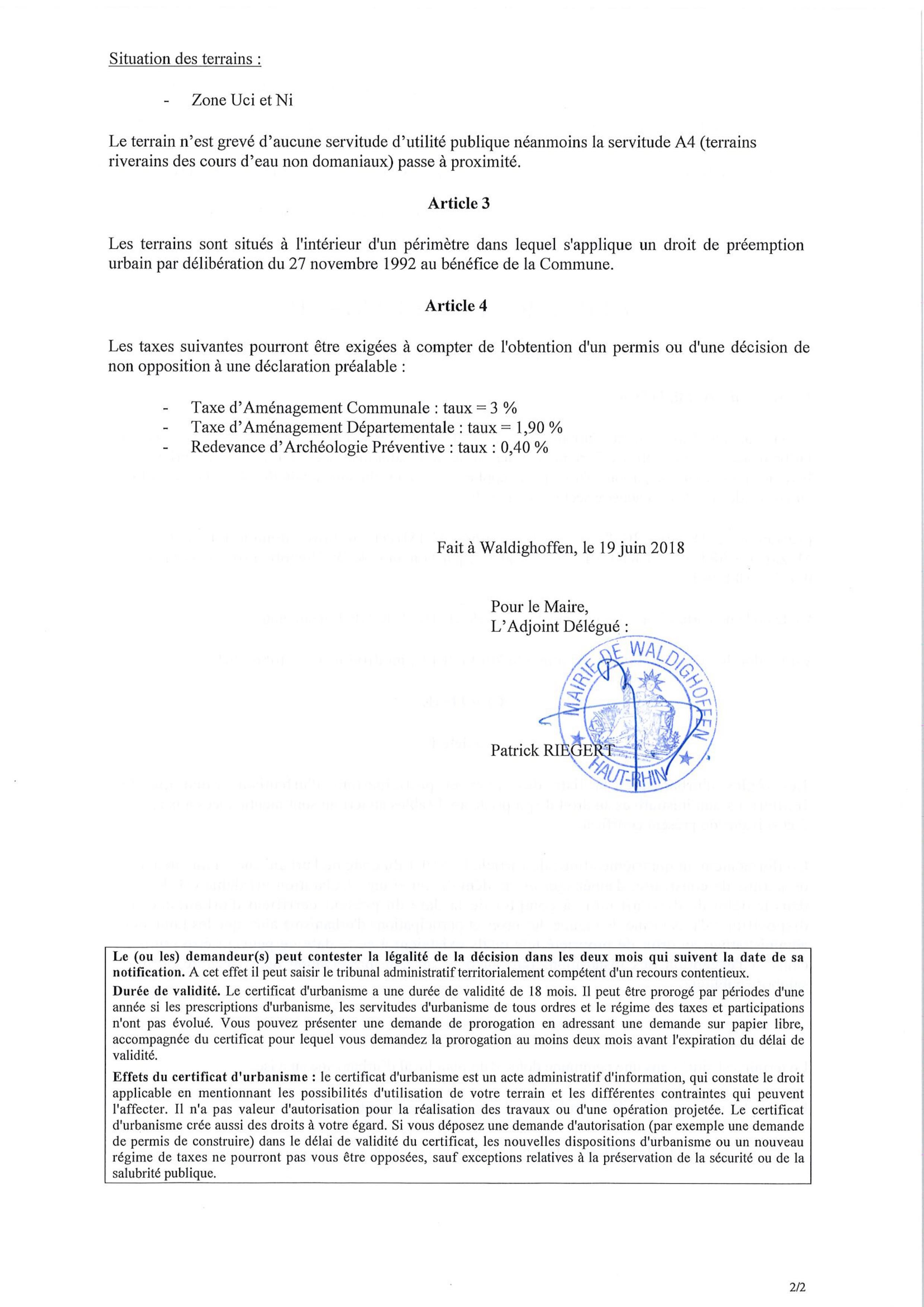 Vous êtes ici : Accueil Mairie Affichage public Annexes affichage public 2018 Certificat d'urbanisme établi pour Maître Anne SCHMIDT
