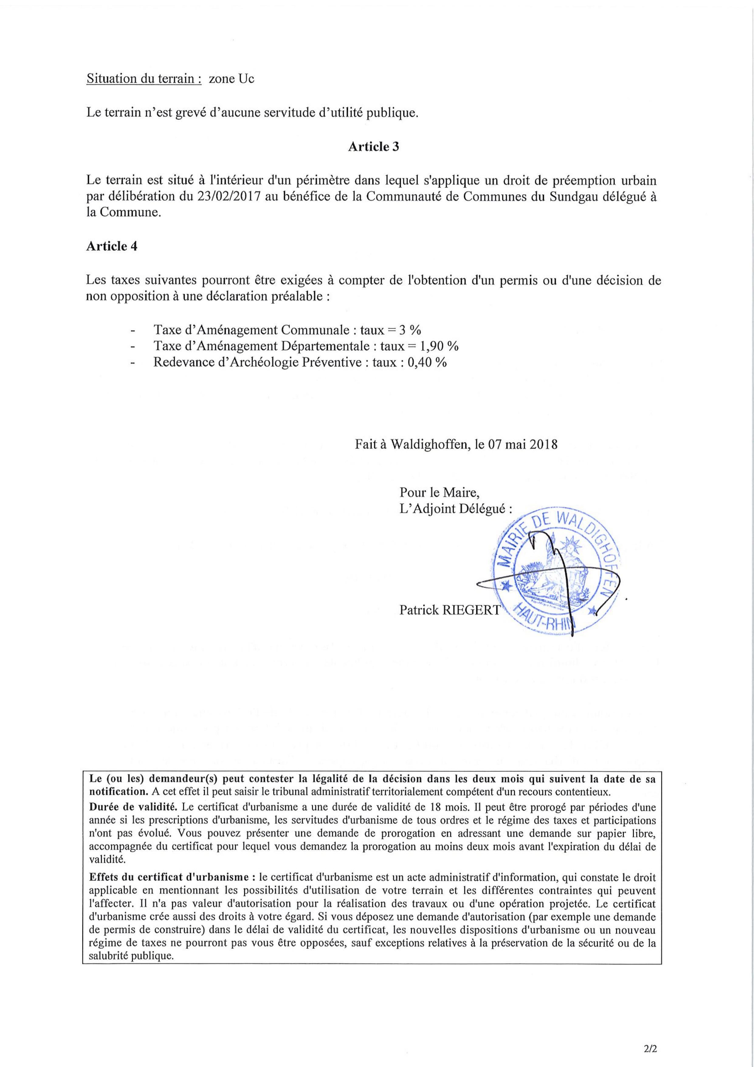 Certificat d'urbanisme établi pour Maître Catherine BAEUMLIN-ANDELFINGER