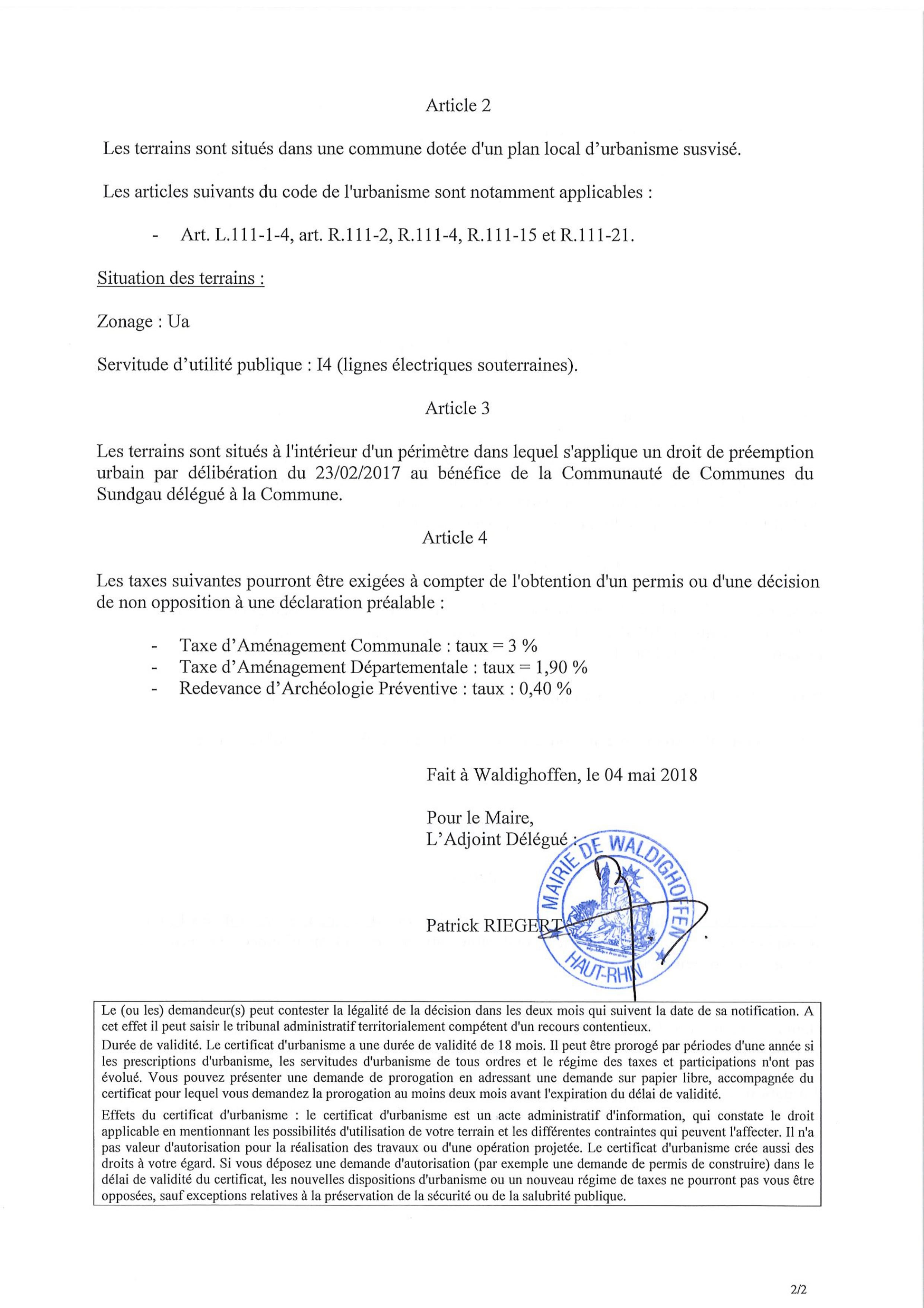Vous êtes ici : Accueil Mairie Affichage public Annexes affichage public 2018 Certificat d'urbanisme établi pour Maître Michel STEHLIN