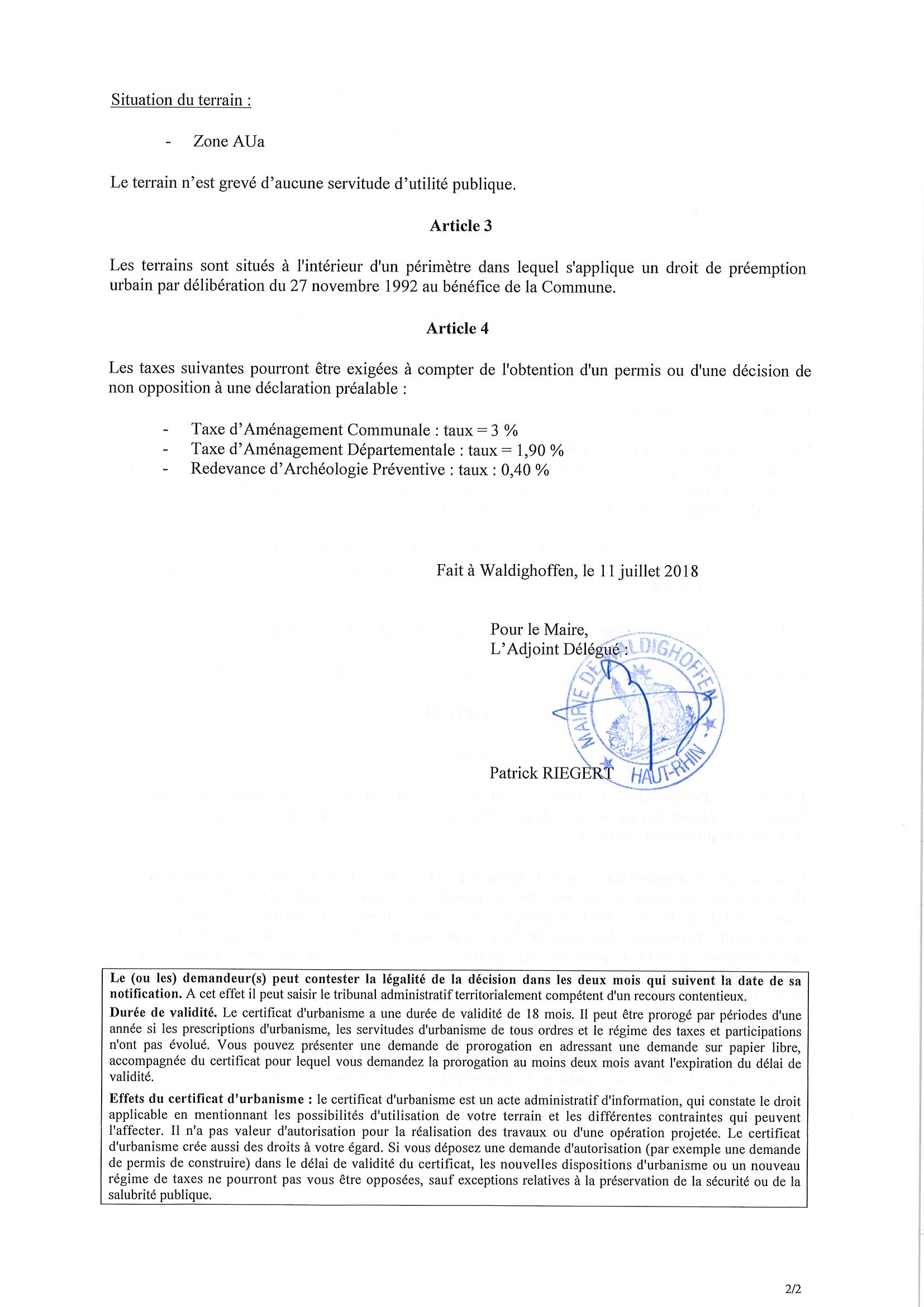 Vous êtes ici : Accueil Mairie Affichage public Annexes affichage public 2018 Certificat d'urbanisme établi pour Mme Enderlin