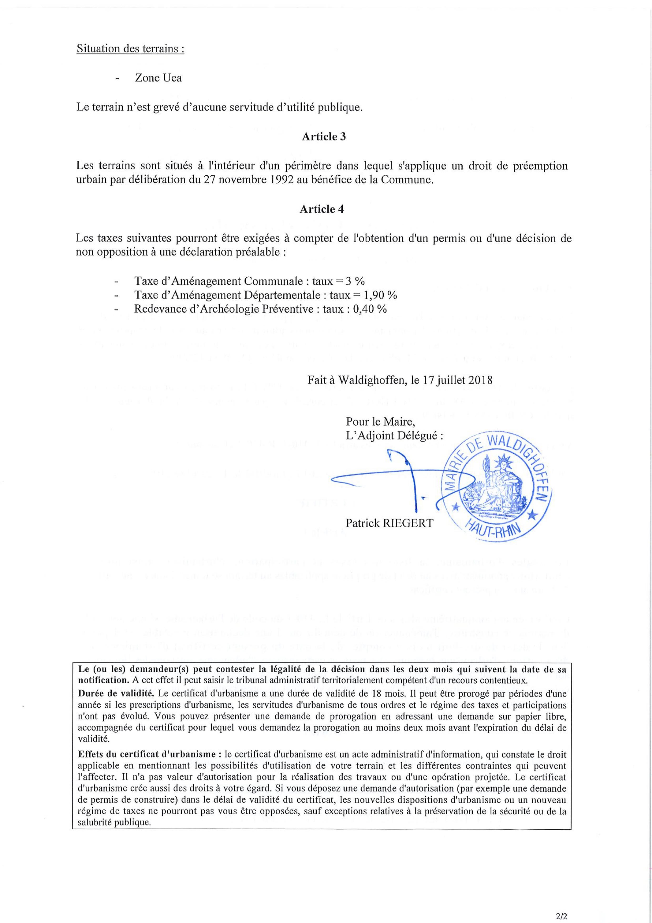 Vous êtes ici : Accueil Mairie Affichage public Annexes affichage public 2018 Certificat d'urbanisme établi pour Maître Thuet, notaire