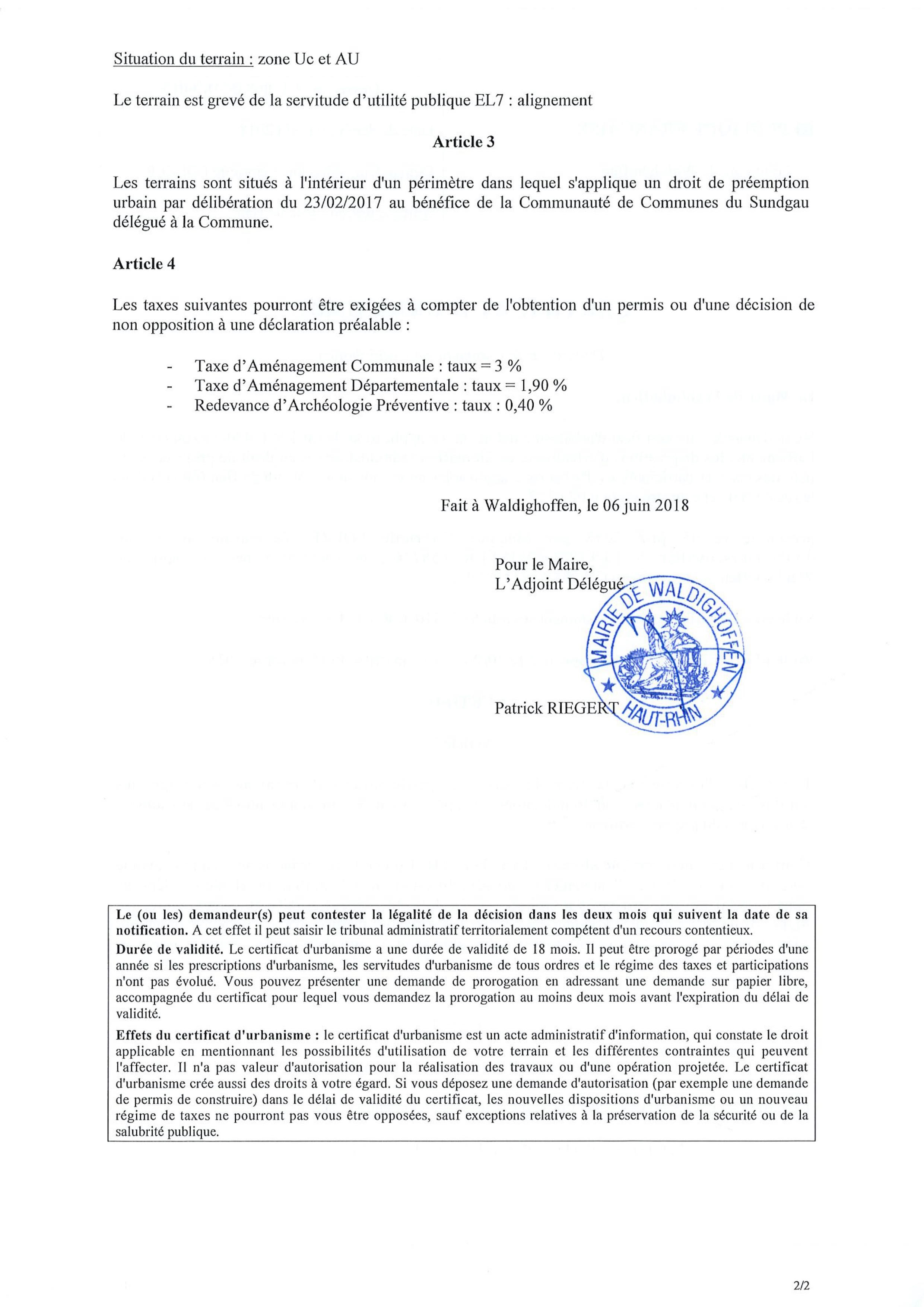 Vous êtes ici : Accueil Mairie Affichage public Annexes affichage public 2018 Certificat d'urbanisme établi pour Mme FOLZER