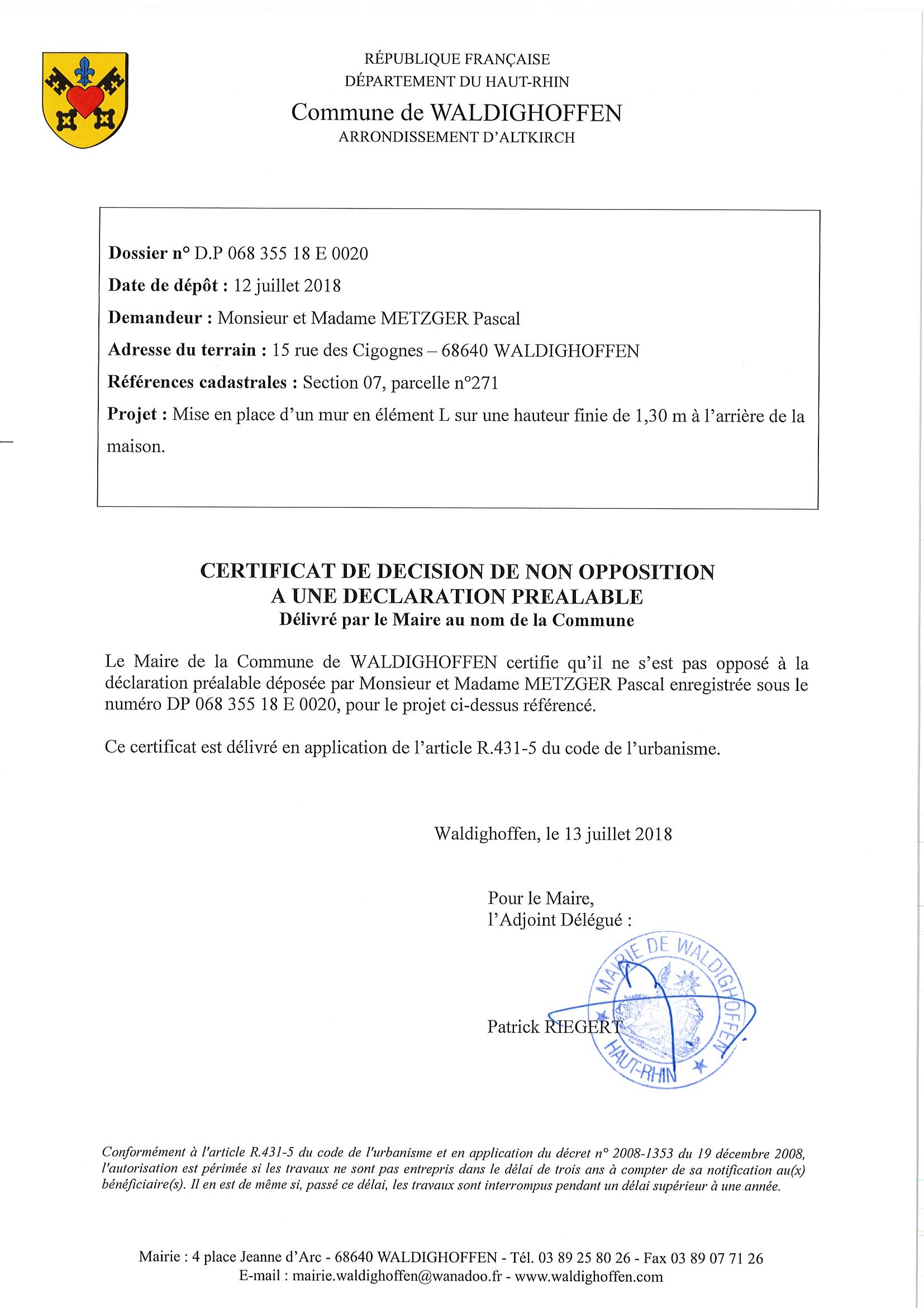 Décision à la demande d'autorisation de travaux à M. et Mme METZGER Pascal