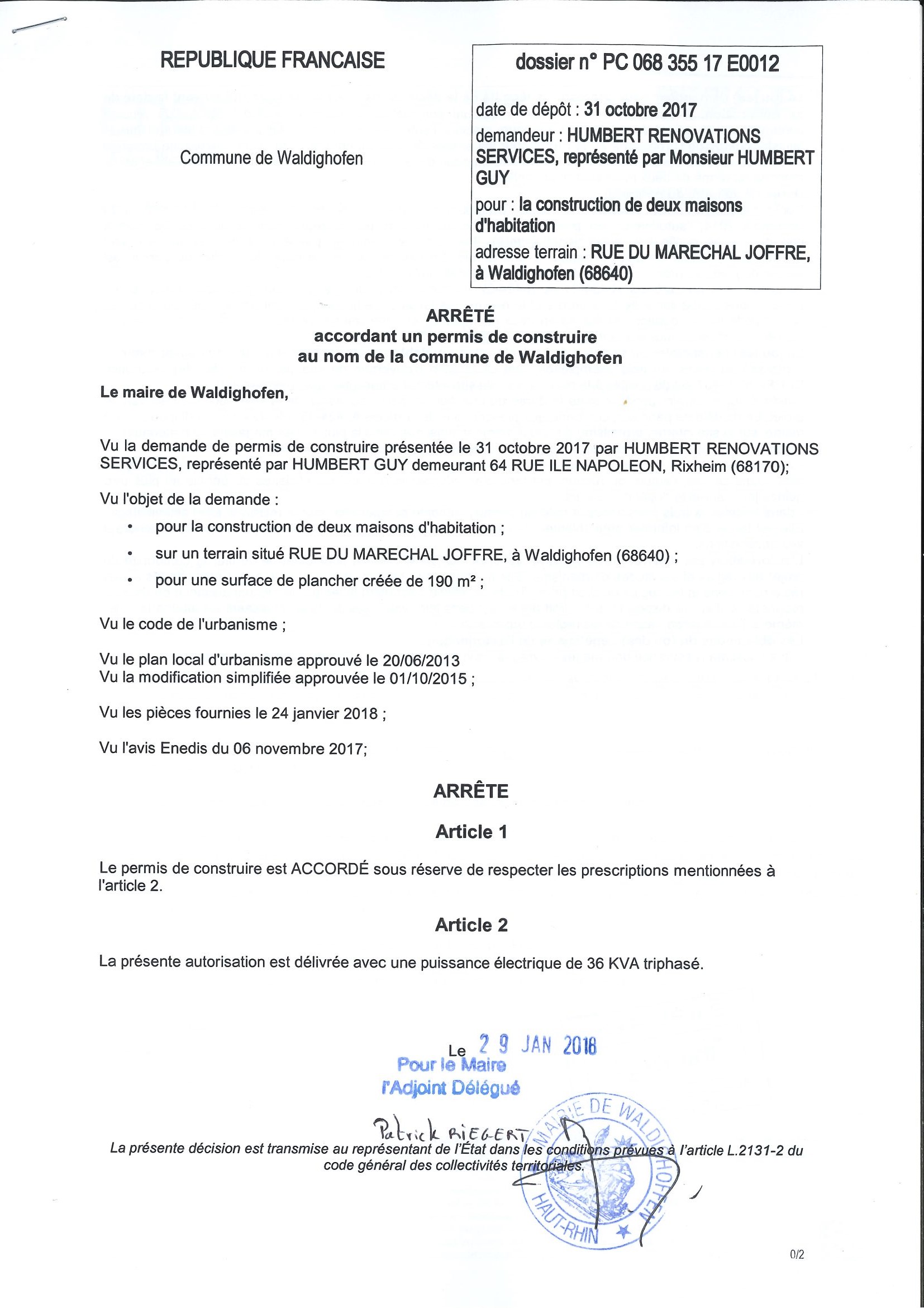 Décision à la demande de construire de la Sàrl Humbert rénovation services