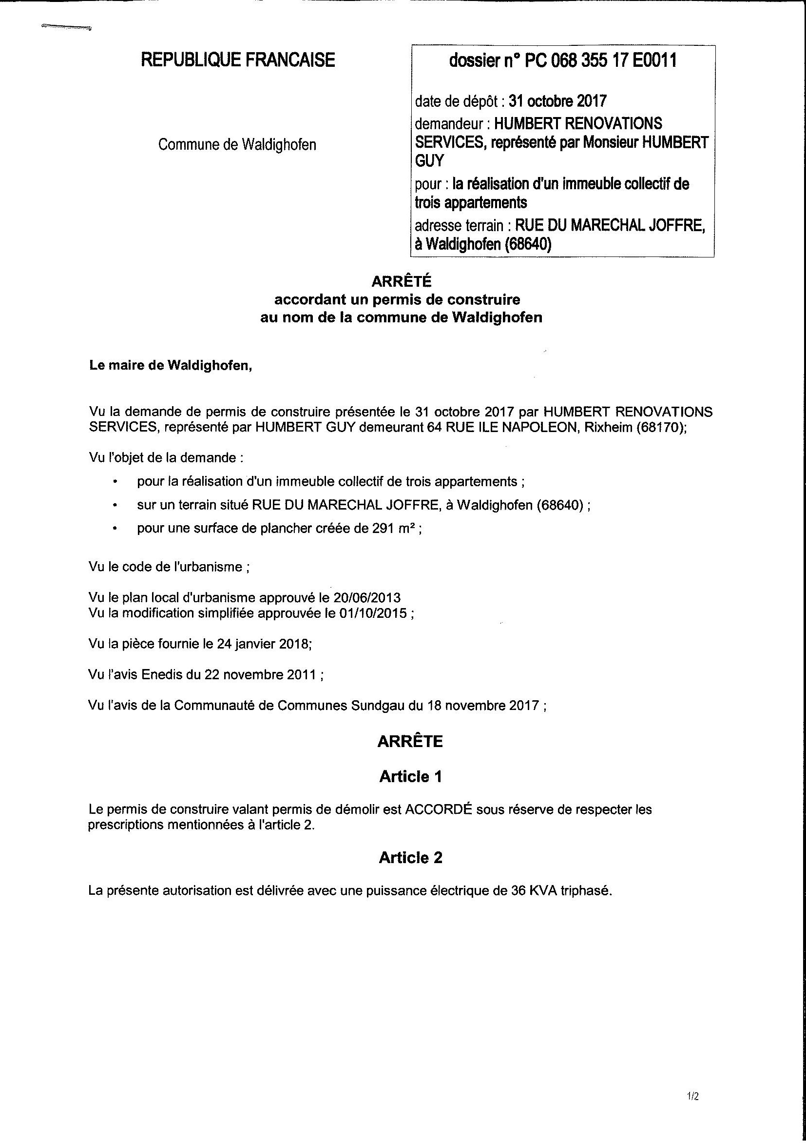 Décision à la demande de construire de la Sàrl Humbert rénovation services
