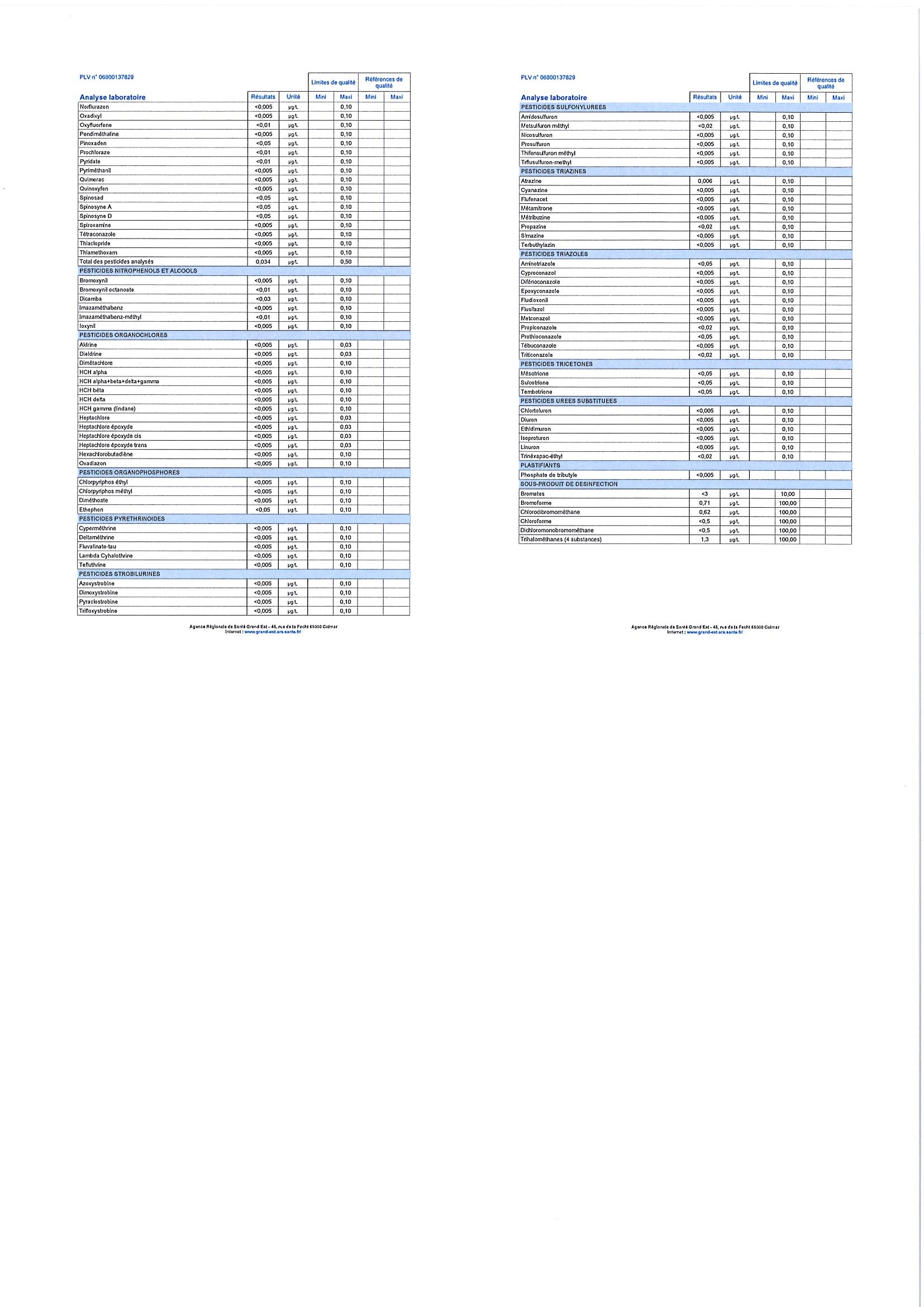 Vous êtes ici : Accueil Mairie Affichage public Annexes affichage public 2019 Analyse eau du 18.02.2019