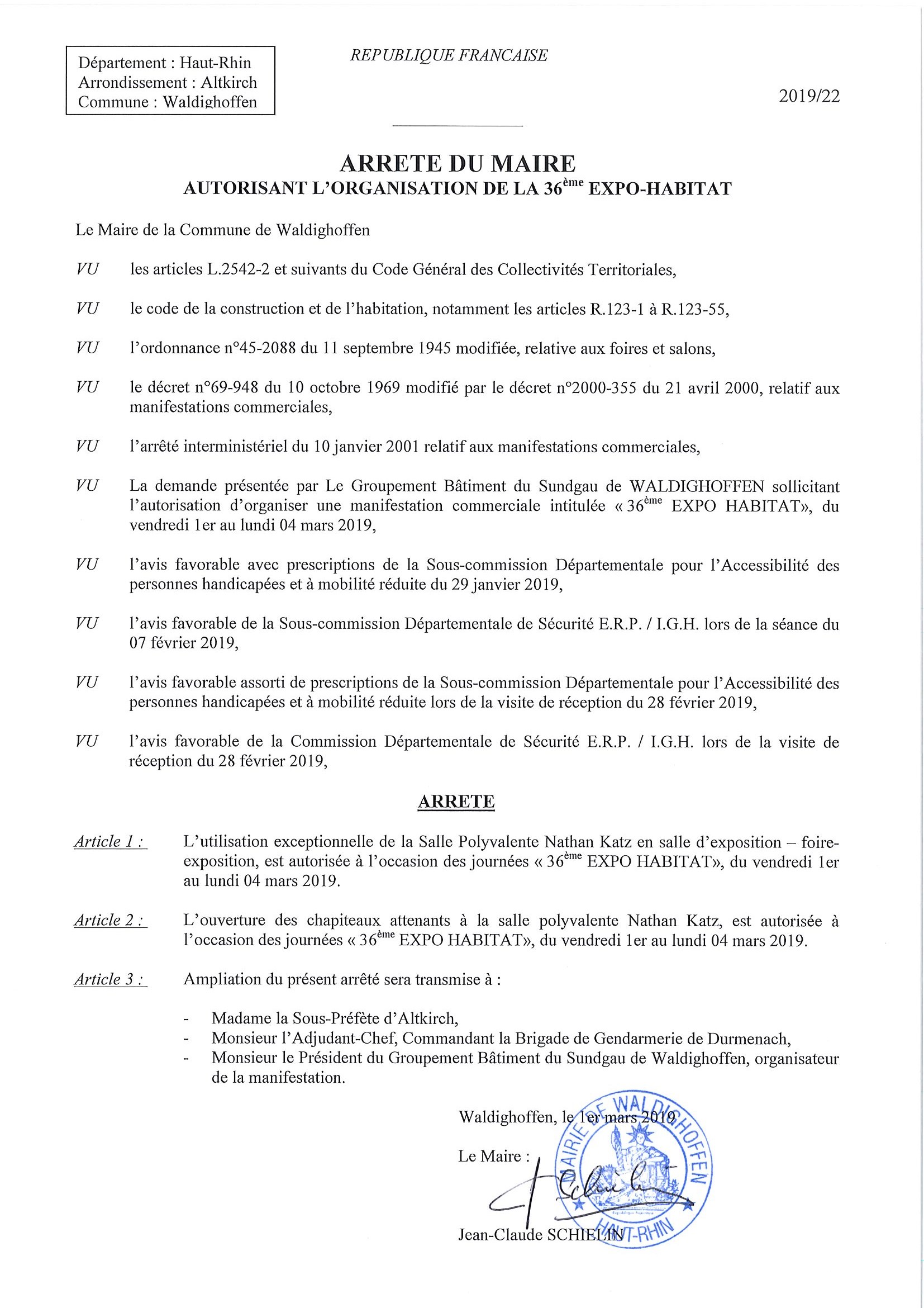 Arrêté du Maire autorisant l'organisation de l'expo-habitat