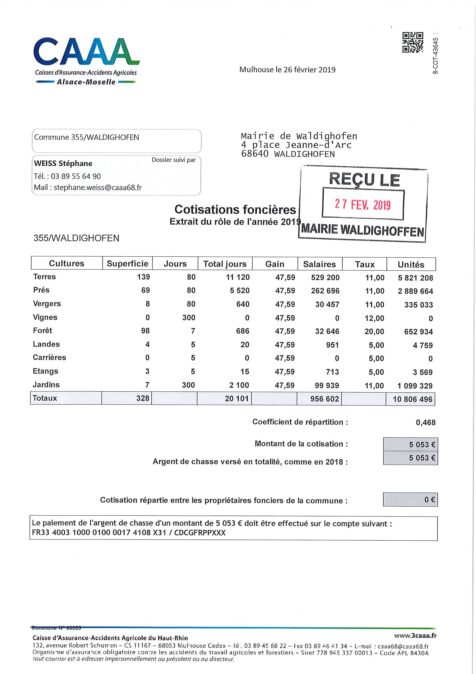 Cotisations foncières 2019