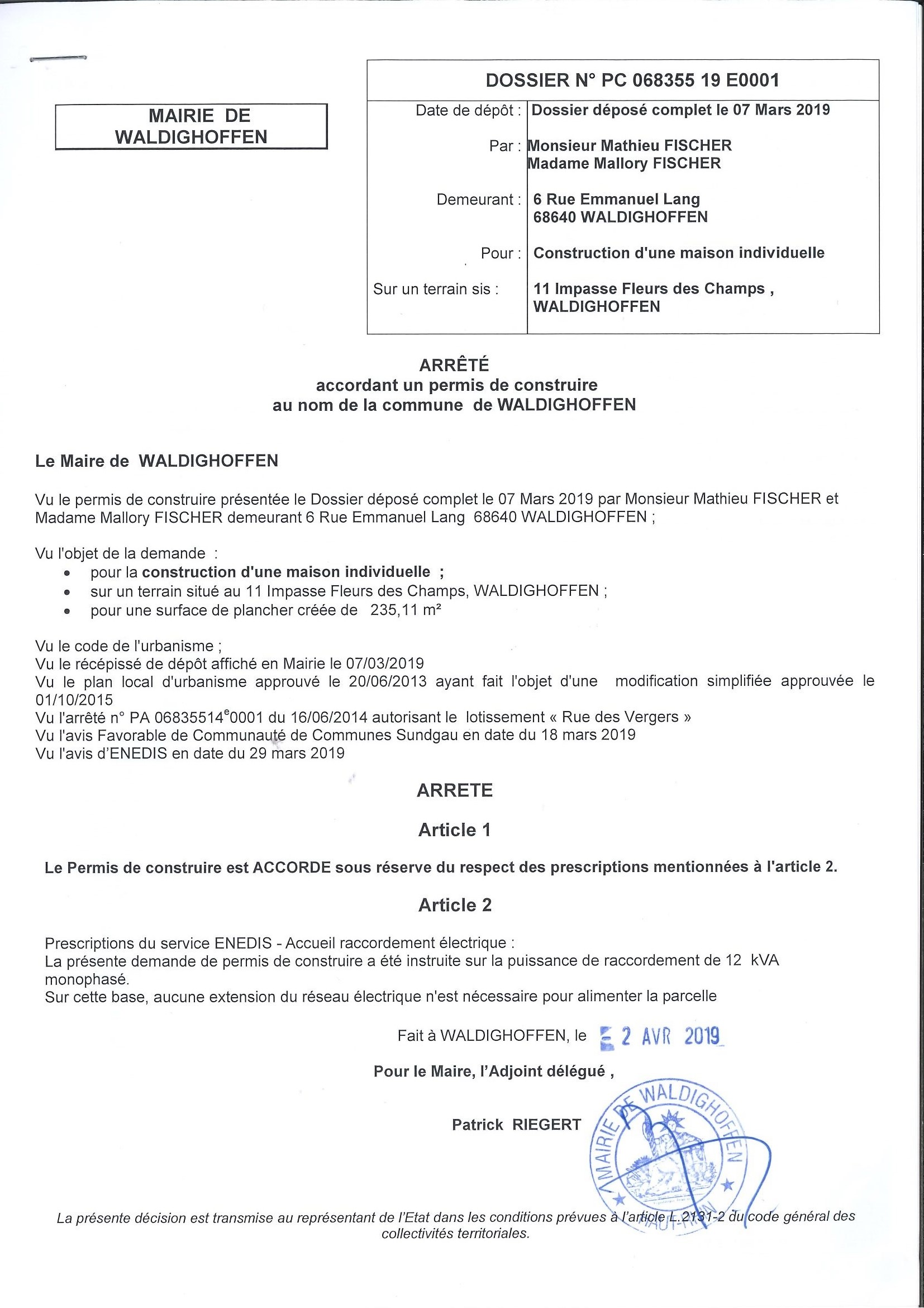 Décision à la demande de construire de M. et Mme Fischer Mathieu