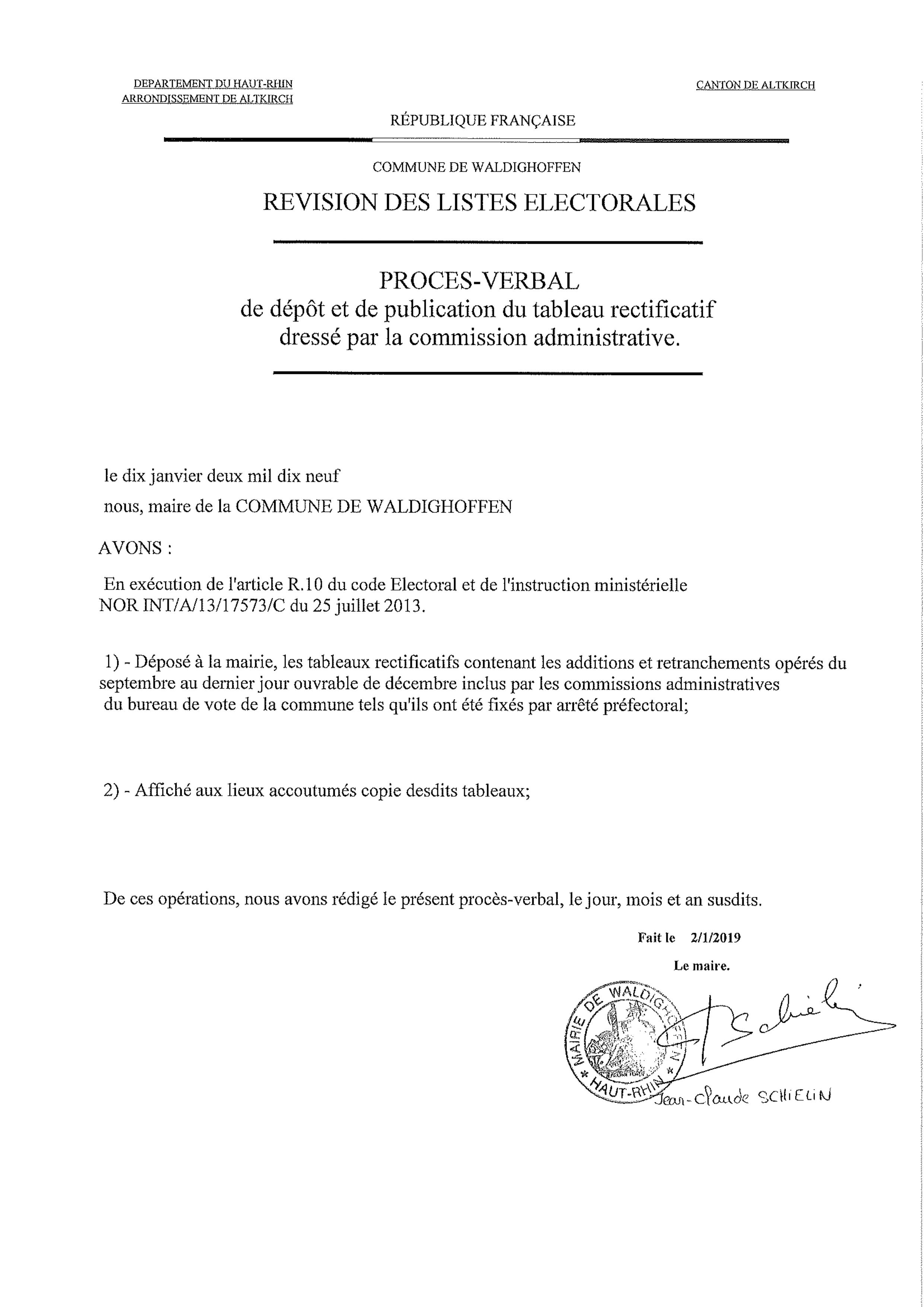Procès-verbal de dépôt et de publication du tableau rectificatif dressé par la commission administrative