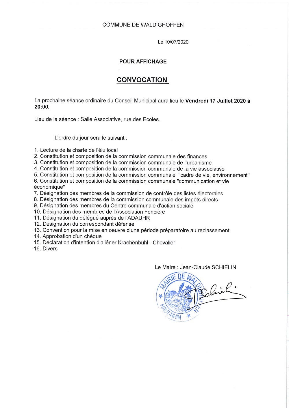 Convocation CM 17 juillet 2020