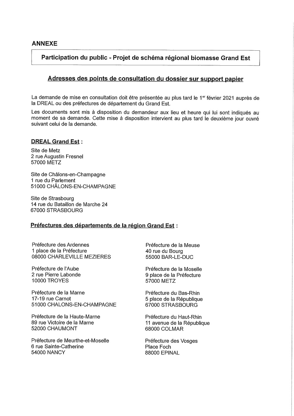 Page 3 de l'information sur la consultation publique biomasse Grand Est.
