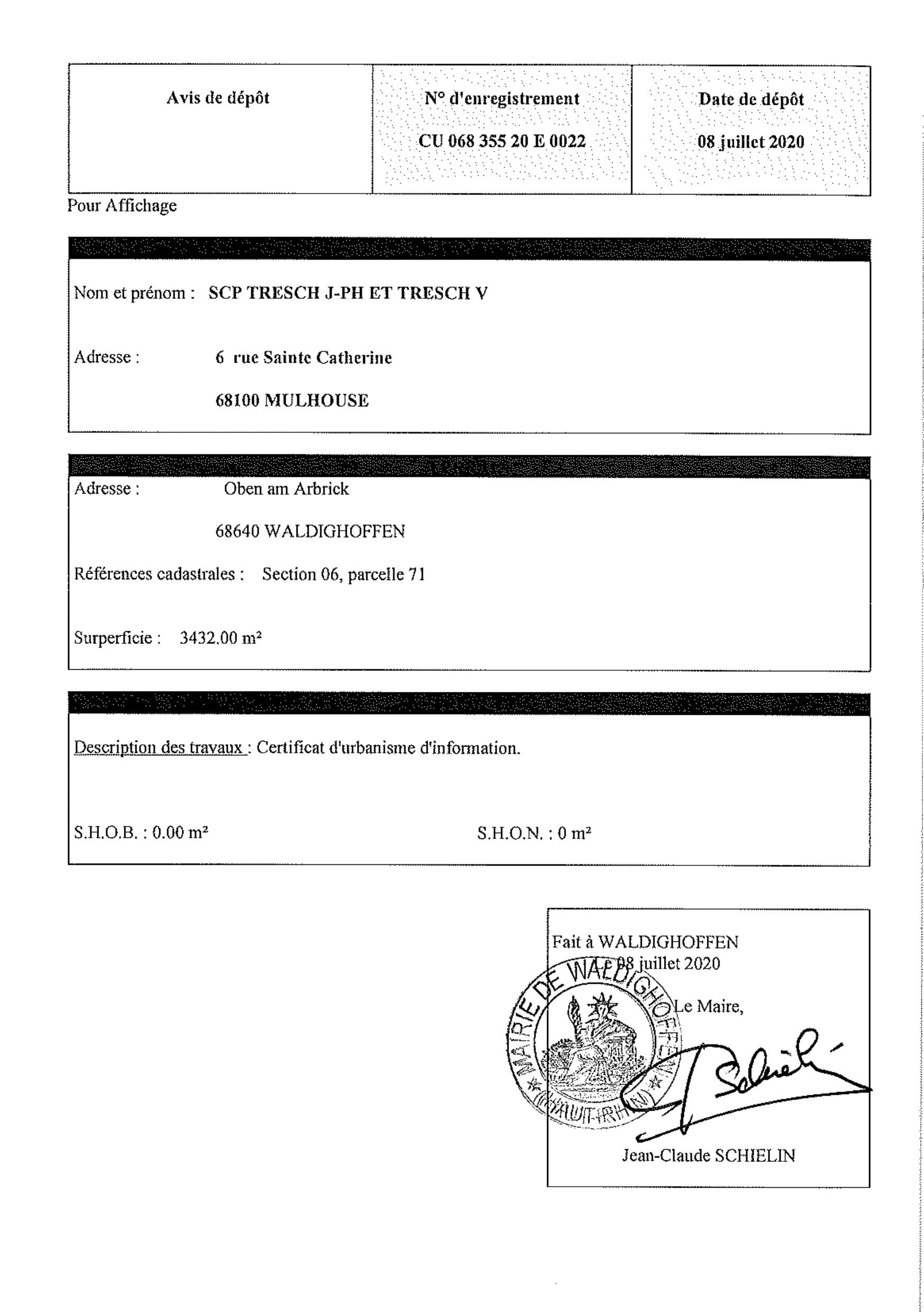 Vous êtes ici : Accueil Mairie Affichage public Annexes affichage public 2020 Dépôt CU20E22