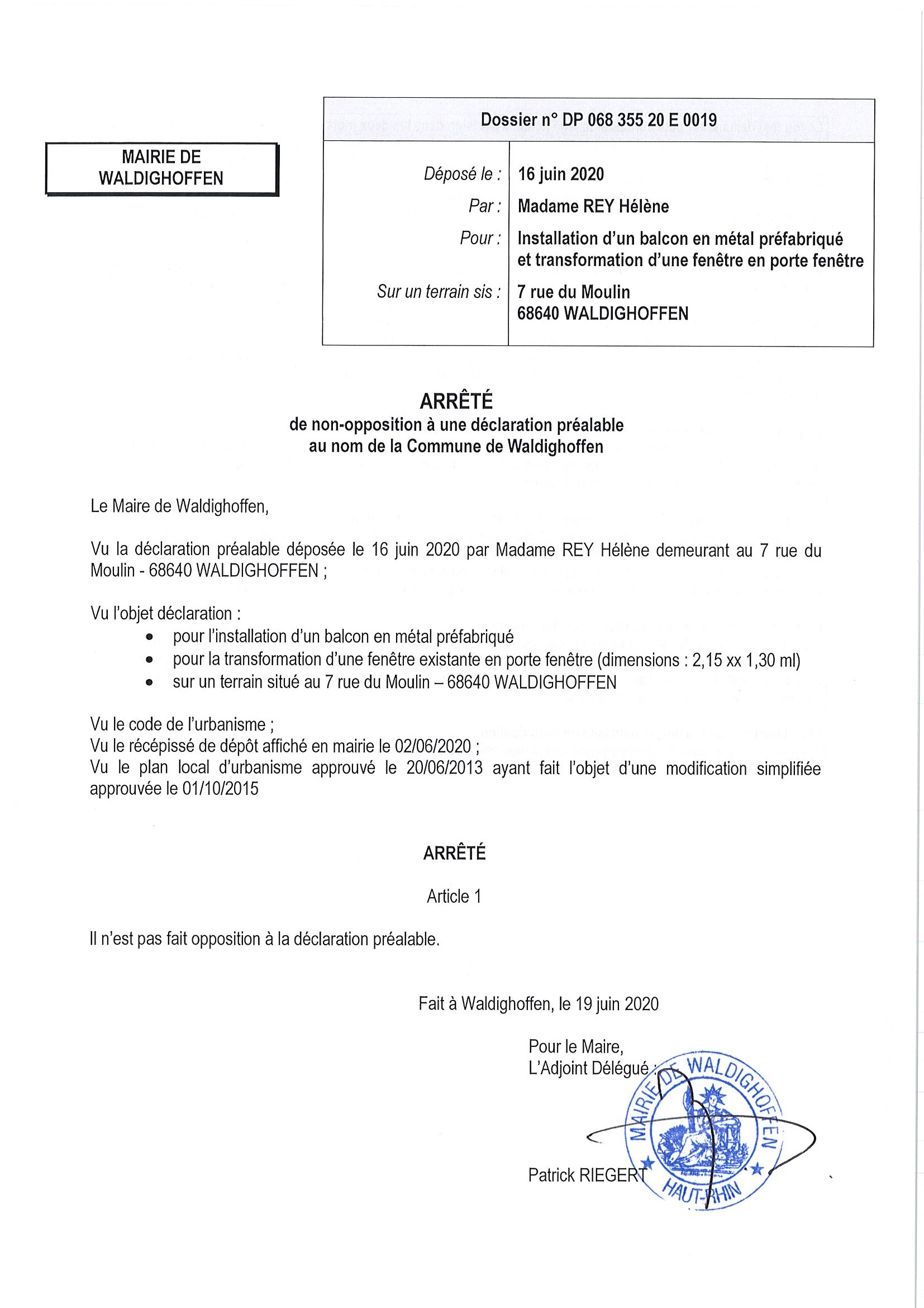 Vous êtes ici : Accueil Mairie Affichage public Annexes affichage public 2020 Décision à la demande d'autorisation à Madame Rey Hélène
