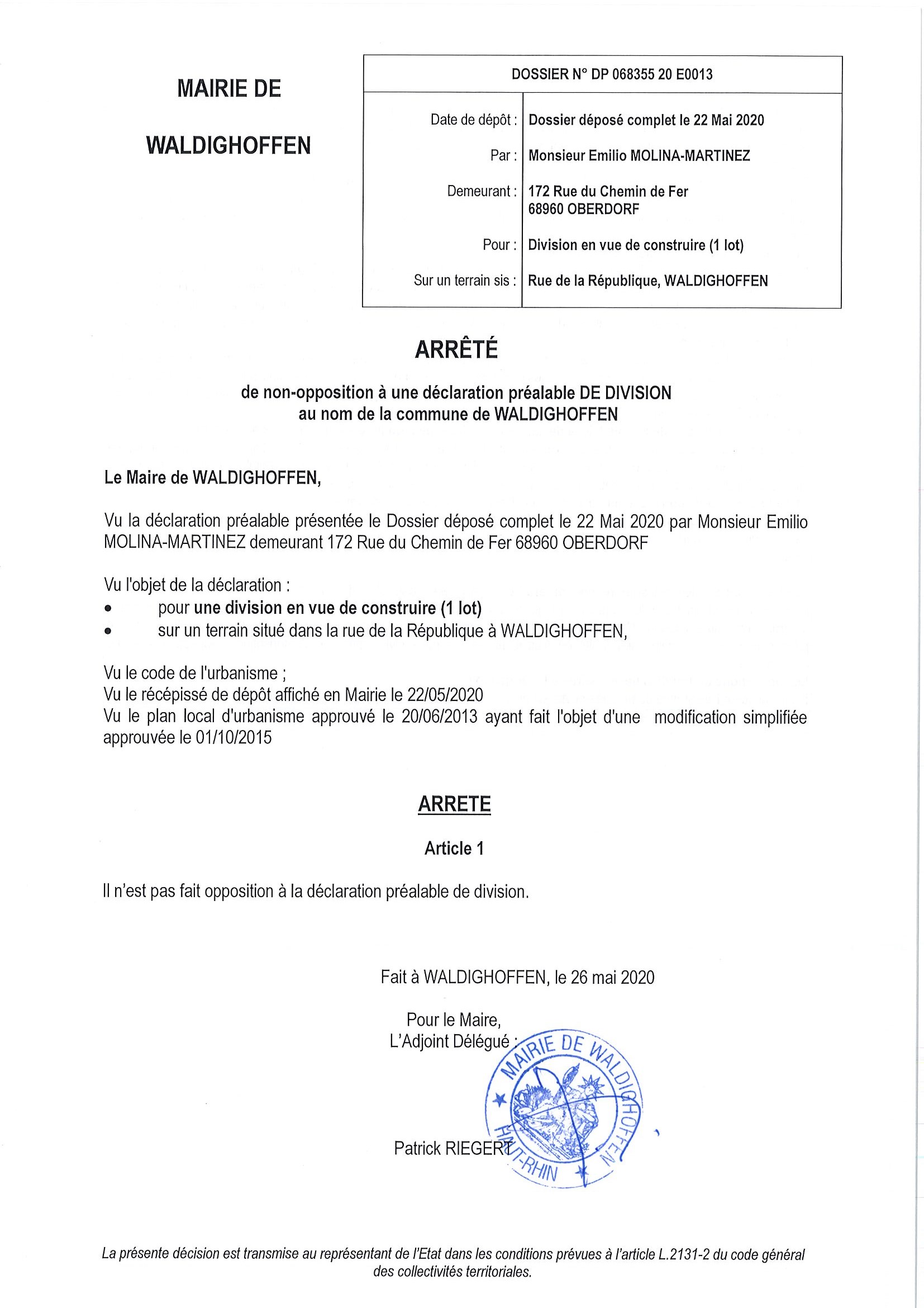 Décision à la demande d'autorisation de Monsieur Molina-Martinez Emilio