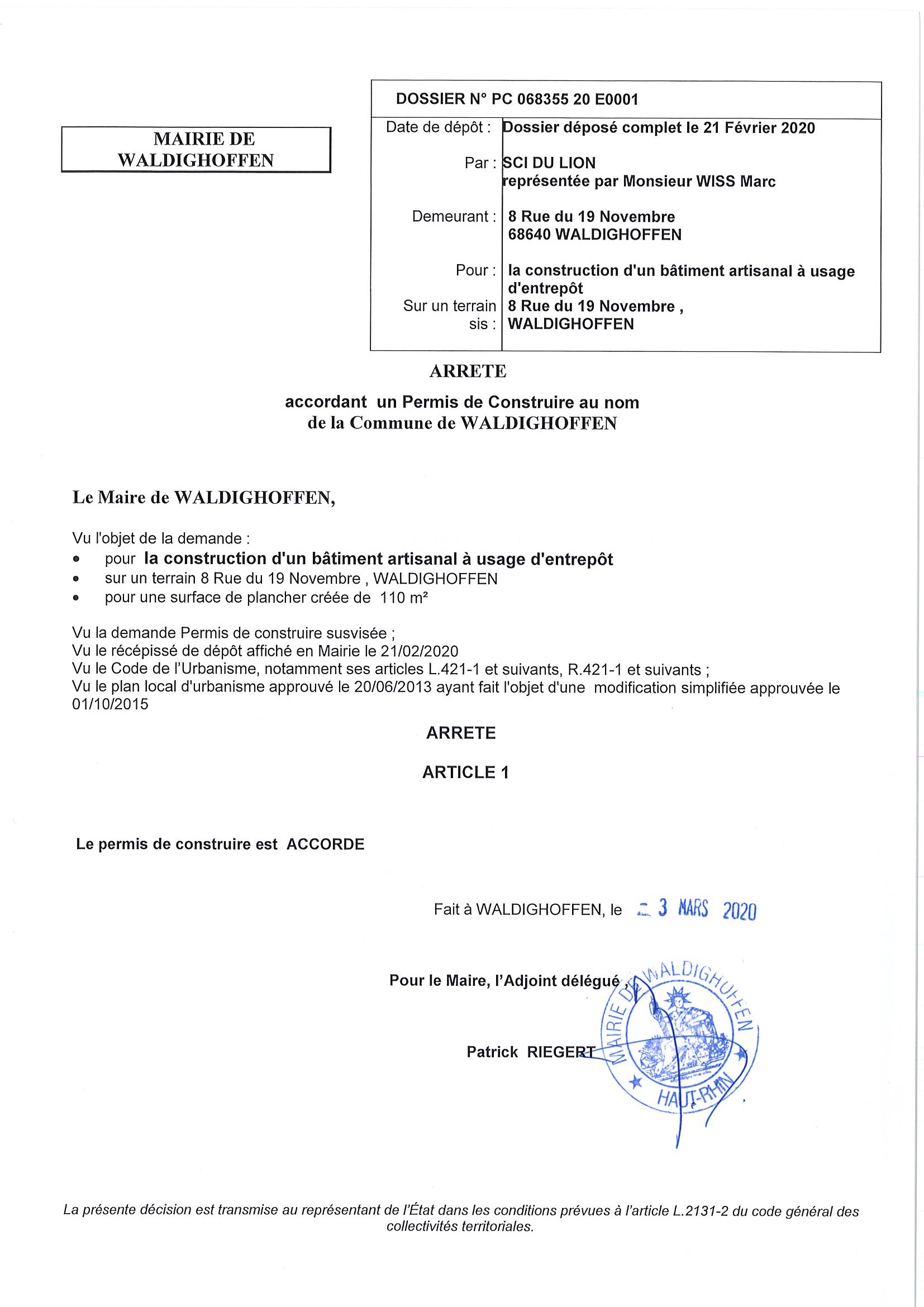 Un permis de construire modificatif a été délivré à la Sci du Lion pour la construction d'un entrepôt