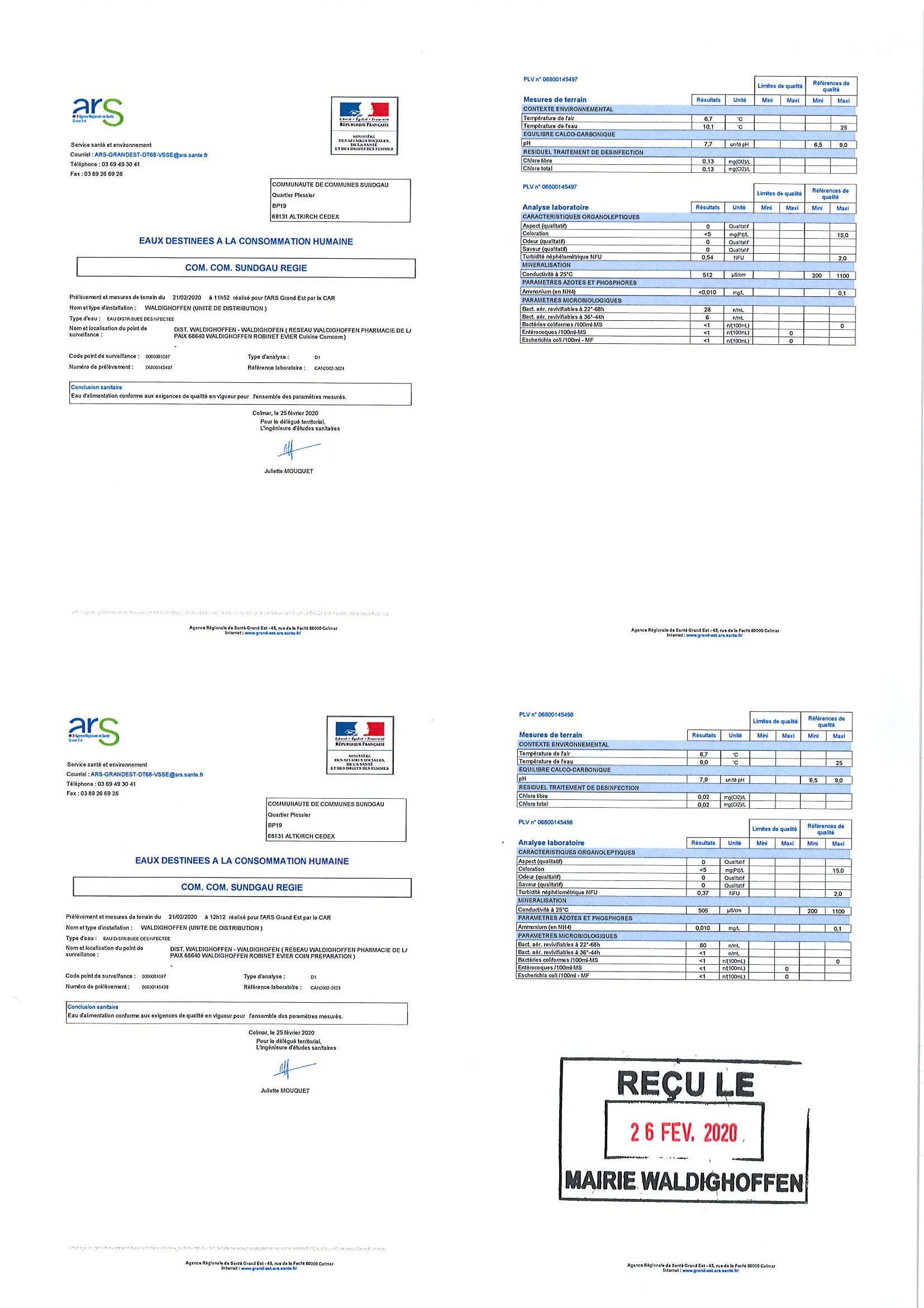 Vous êtes ici : Accueil Mairie Affichage public Annexes affichage public 2020 Rapports d'analyse d'eau potable