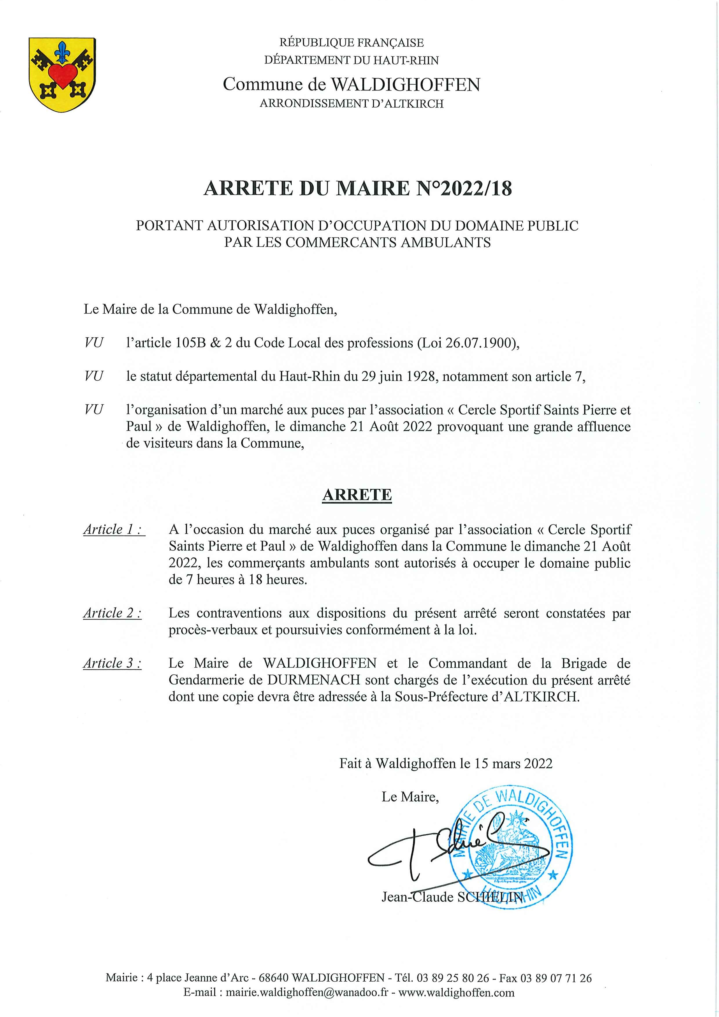 Arrêté du Maire portant autorisation d'occupation du domaine public par les commerces ambulants