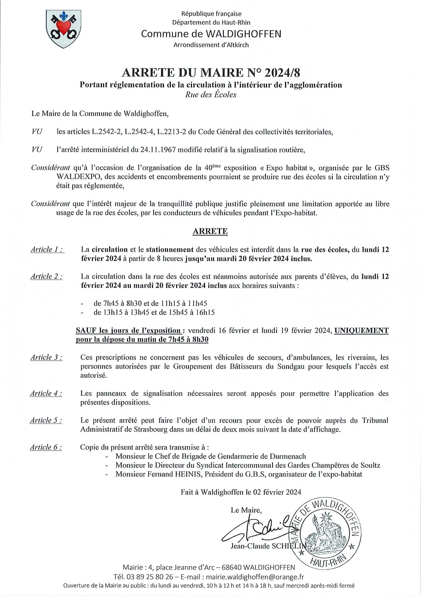 Vous êtes ici : Accueil Mairie Affichage public Annexes affichage public 2023 et 2024 Arrêté du maire n° 2024/8