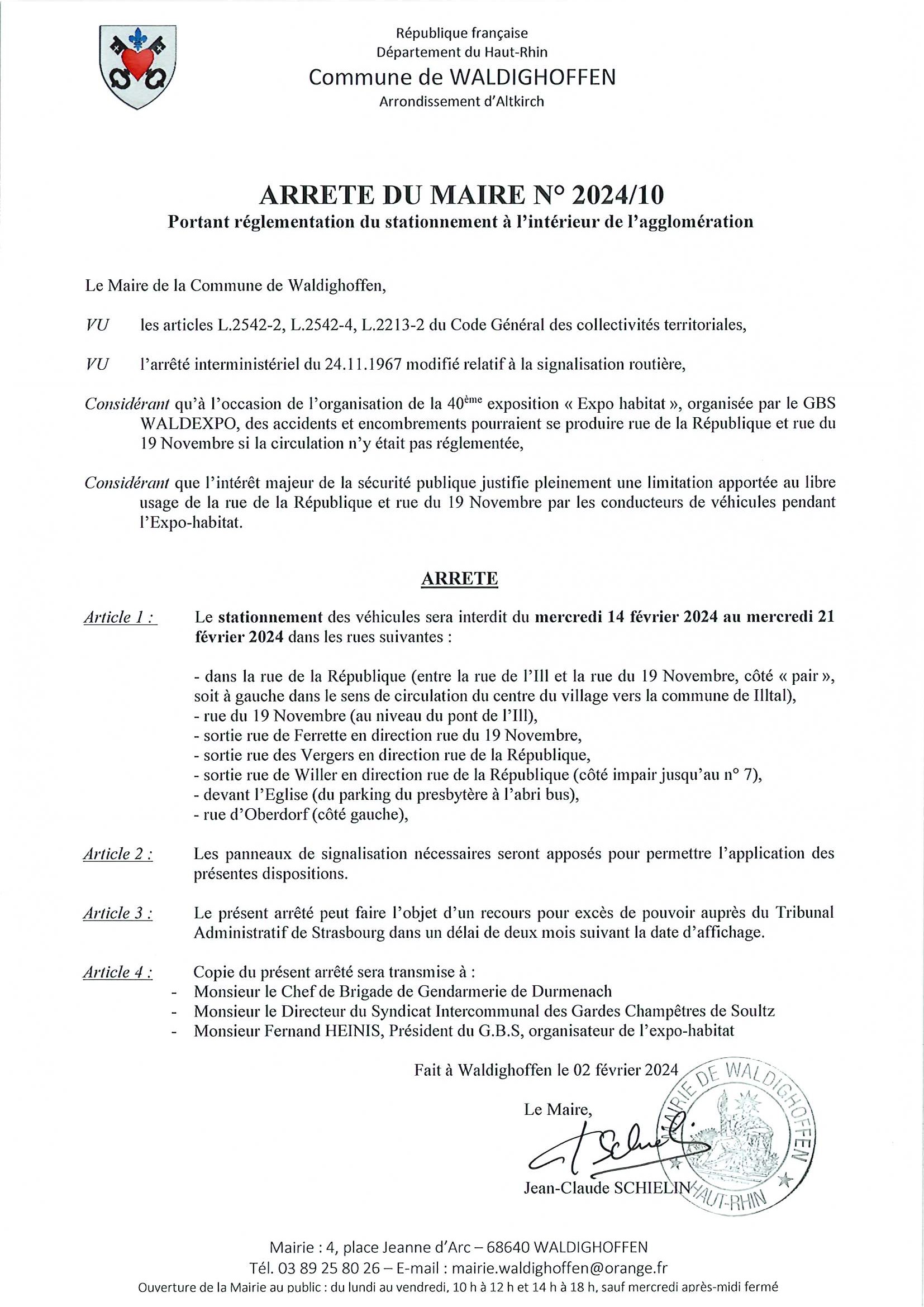 Arrêté du maire n°2024/10