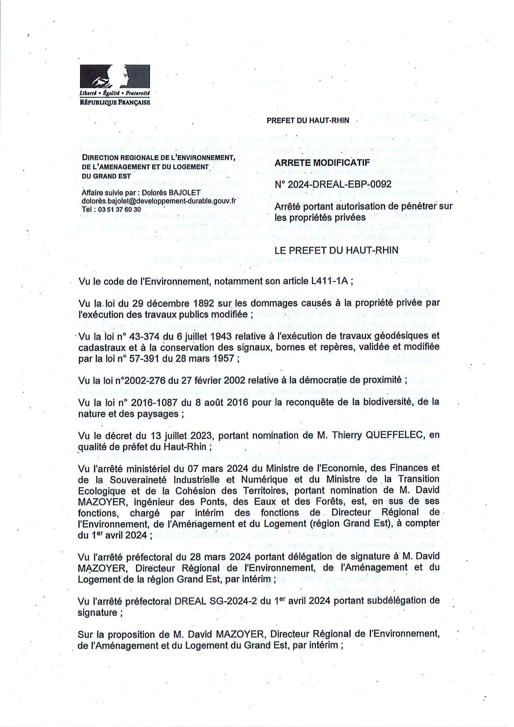 Vous êtes ici : Accueil Mairie Affichage public Annexes affichage public 2023 et 2024 Arrêté préfectoral du 16/05/2024