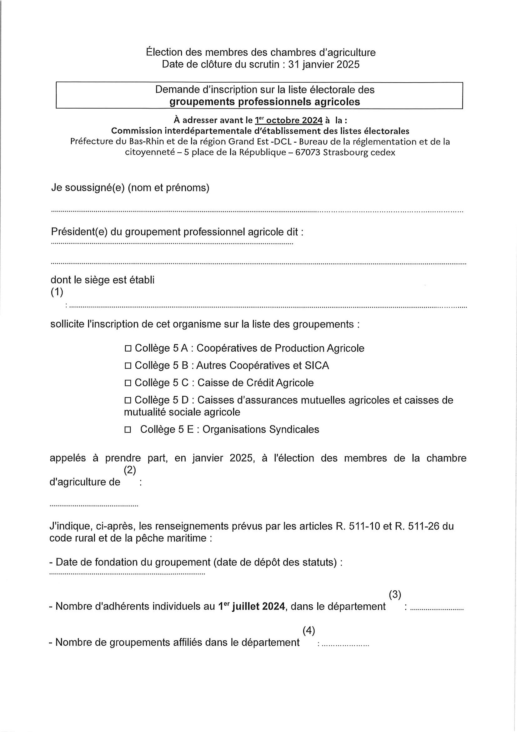 Demande d'inscription sur la liste électorale pour les élections des membres des chambres d'agriculture 2025. Page 1/2
