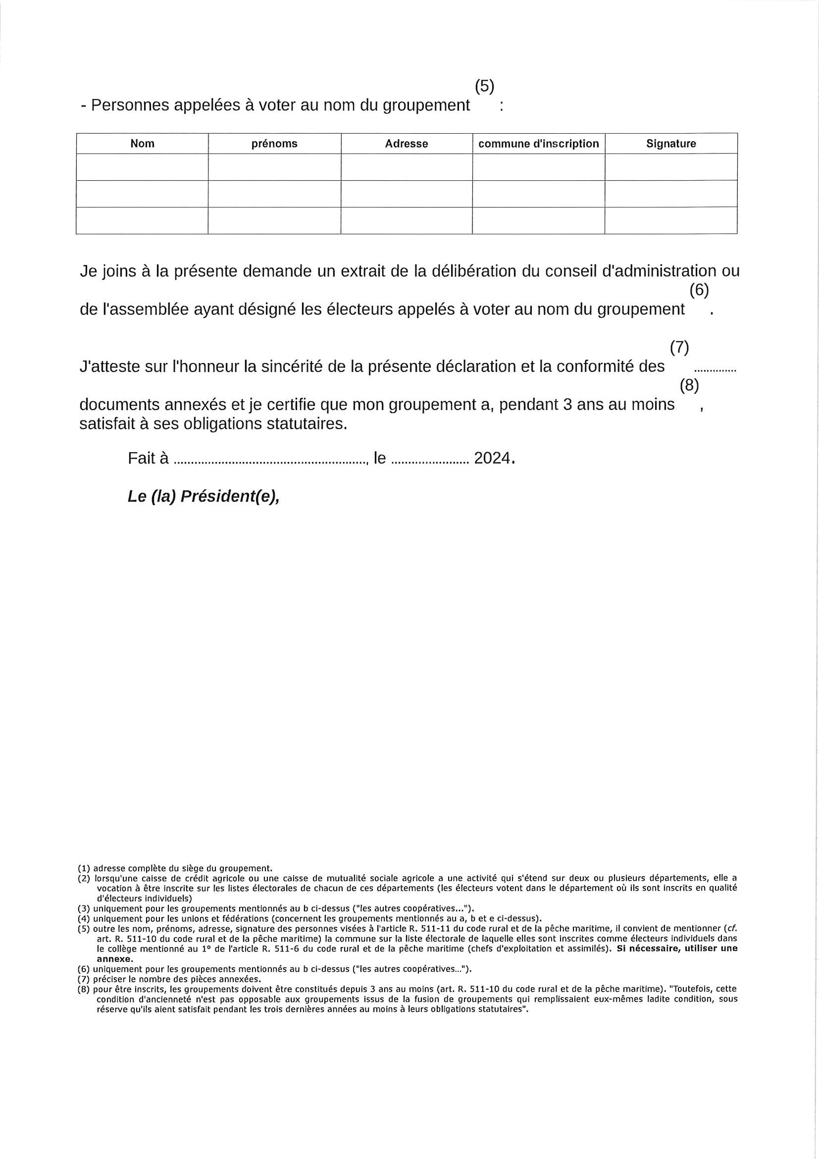 Demande d'inscription sur la liste électorale pour les élections des membres des chambres d'agriculture 2025. Page 2/2