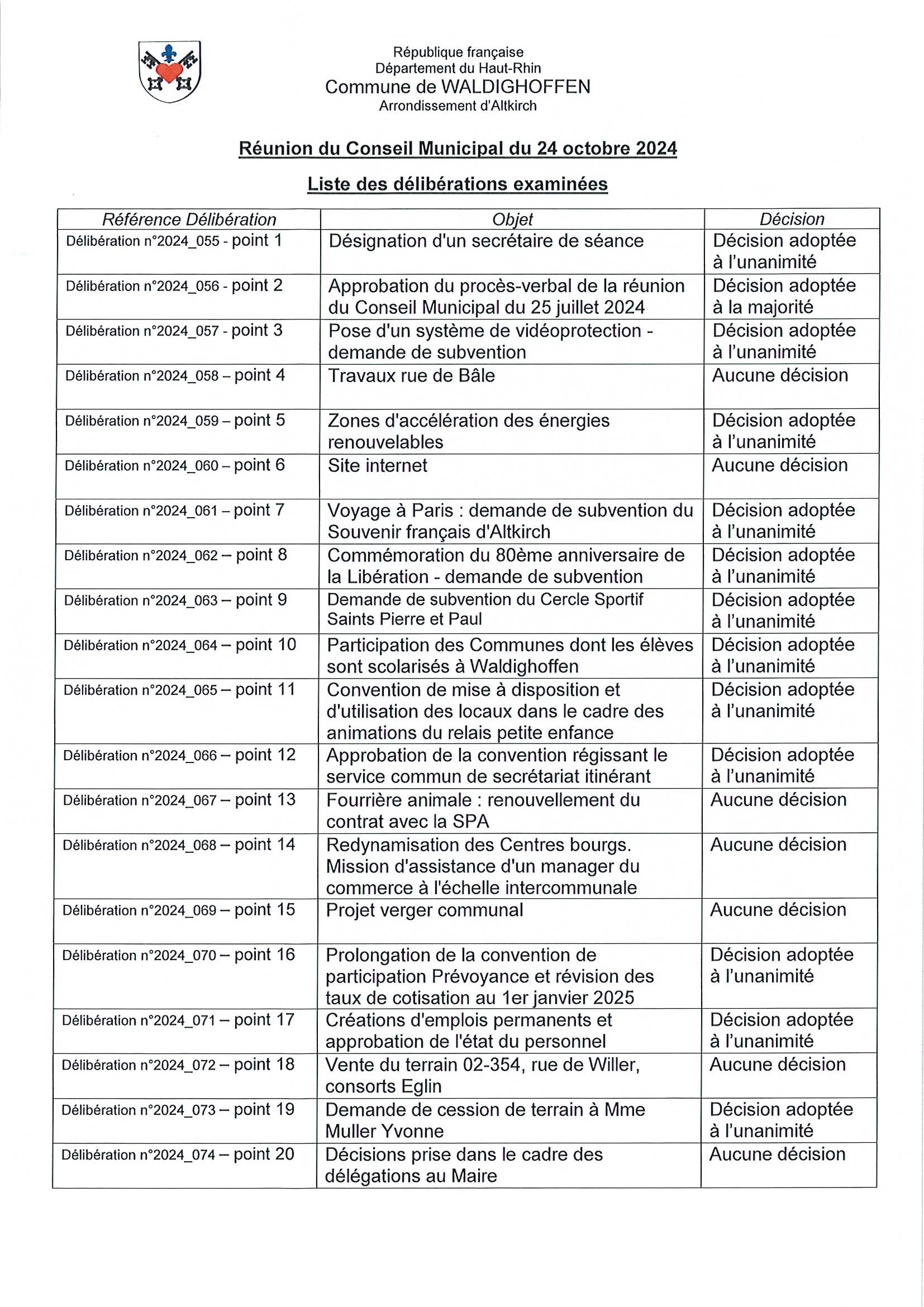 Délibérations de la réunion du conseil municipal du 24/10/2024 - page 1