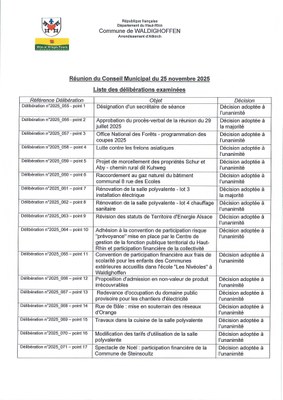 Liste des délibérations examinées par le conseil municipal le 25 novembre 2025