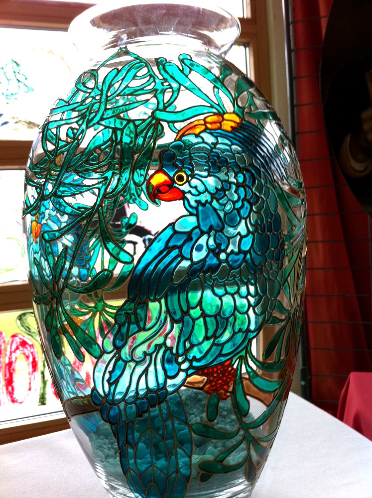 Vase en transparence avec perroquet