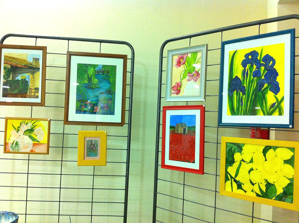 Tableaux de Caroline Ferrara à la médiathèque de Waldighoffen