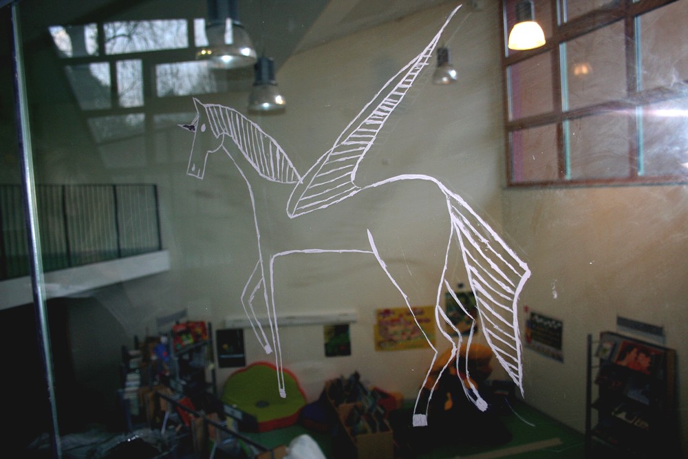 Réalisation sur la vitre de la passerelle