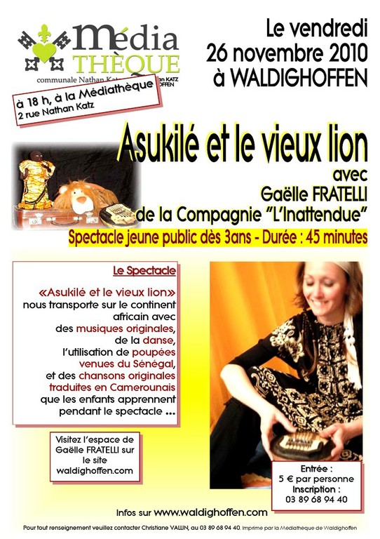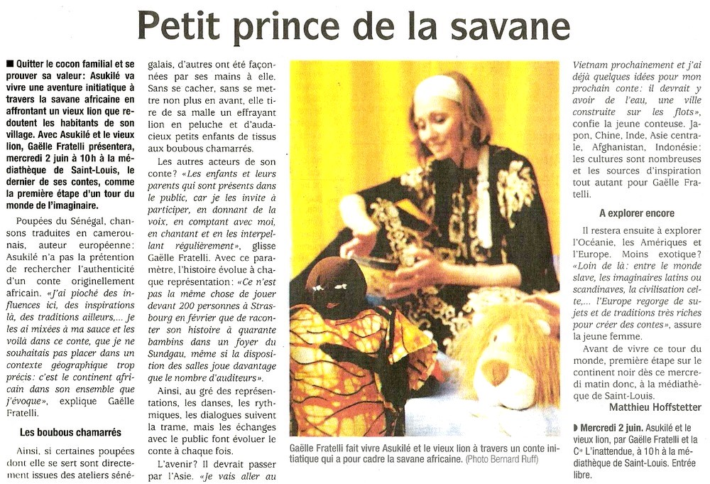 - Le 31 mai 2010, le quotidien DNA a publié un article concernant le spectacle de Gaëlle Fratelli " Azukilé et le vieux lion"