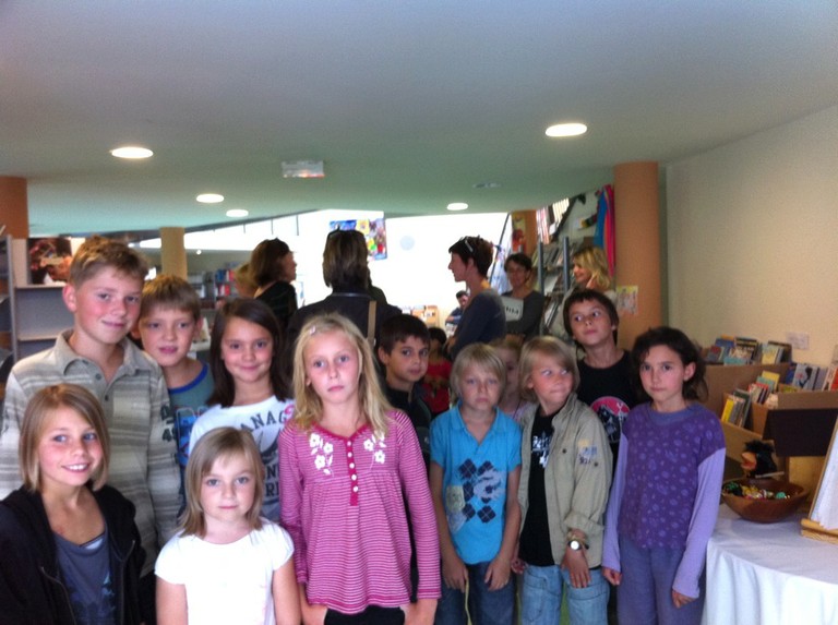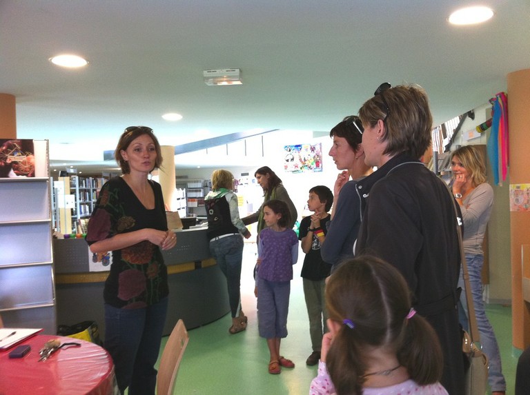- L'atelier vient de se terminer à la Médiathèque de Waldighoffen. Gaëlle Fratelli discute avec les mamans