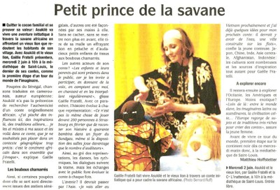 Le 31 mai 2010, le quotidien DNA a publié un article concernant le spectacle de Gaëlle Fratelli " Azukilé et le vieux lion"