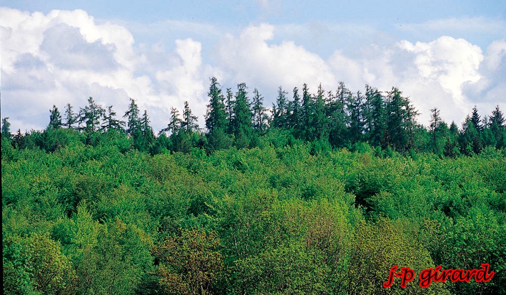 - Durmenach est connu pour sa magnifique forêt de mélèzes. Voici une photo de JP Girard montrant les mélèzes à l'horizon.