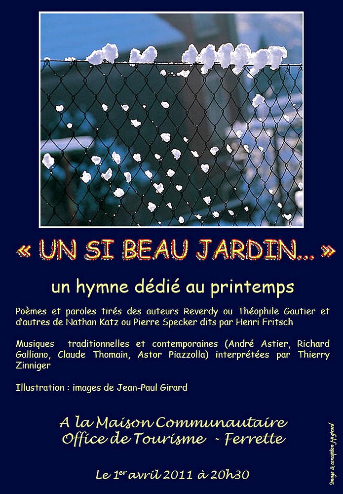 Affiche de la soirée poétique avec Henri Fritsch avec les photos de Jean Paul Girard à l'Office du Tourisme de Ferrette