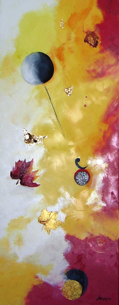 Beau tableau oblong représentant un ballon, des feuilles mortes