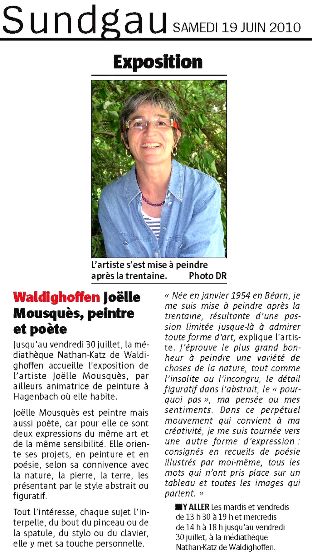 L'article de l'Alsace sur l'expo de Joëlle Mousquès à la Médiathèque