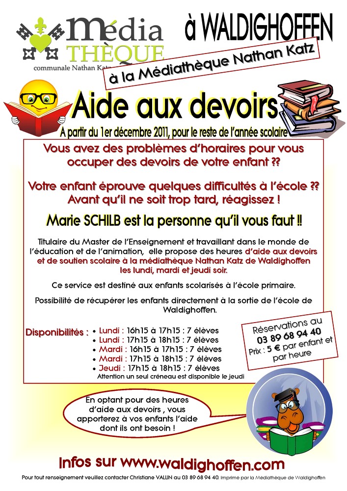 Affiche pour l'aide aux devoirs avec la médiathèque de Waldighoffen en 2011-2012