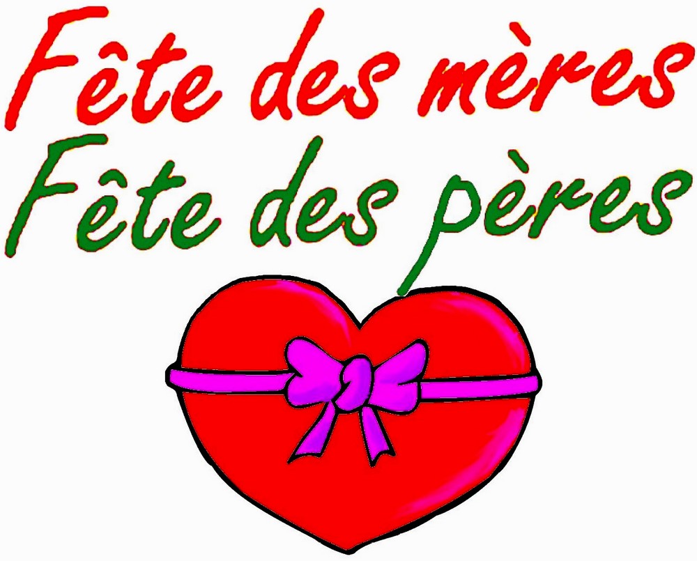 Les deux expressions Fête des mères et des pères sont écrites manuellement, soulignées par un coeur rouge avec un flot