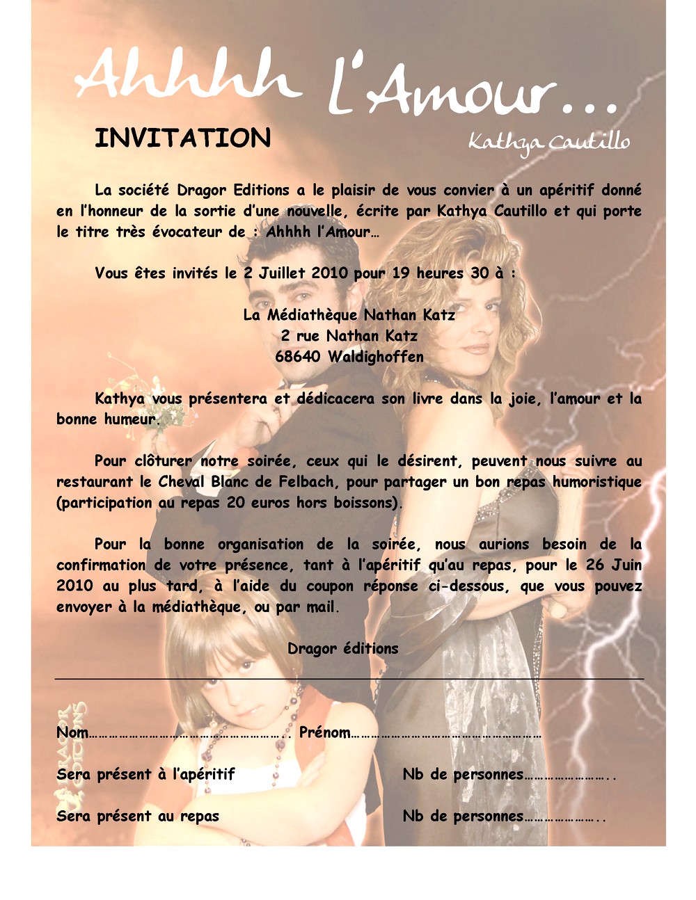 Invitation pour l'apéritif donné le 2 juillet 2010 par les éditions Dragor