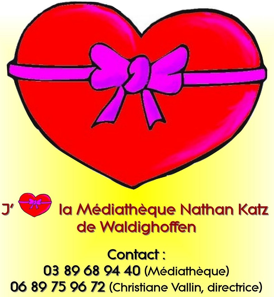 Coeur rouge et ruban rose avec les coordonnées téléphoniques médiathèque