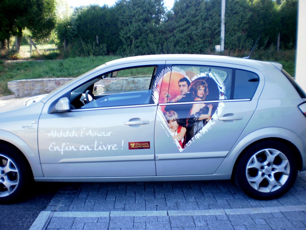 Le véhicule de Kathya préparé pour son tour de France des librairies, prêt pour le départ devant la Médiathèque de Waldighoffen