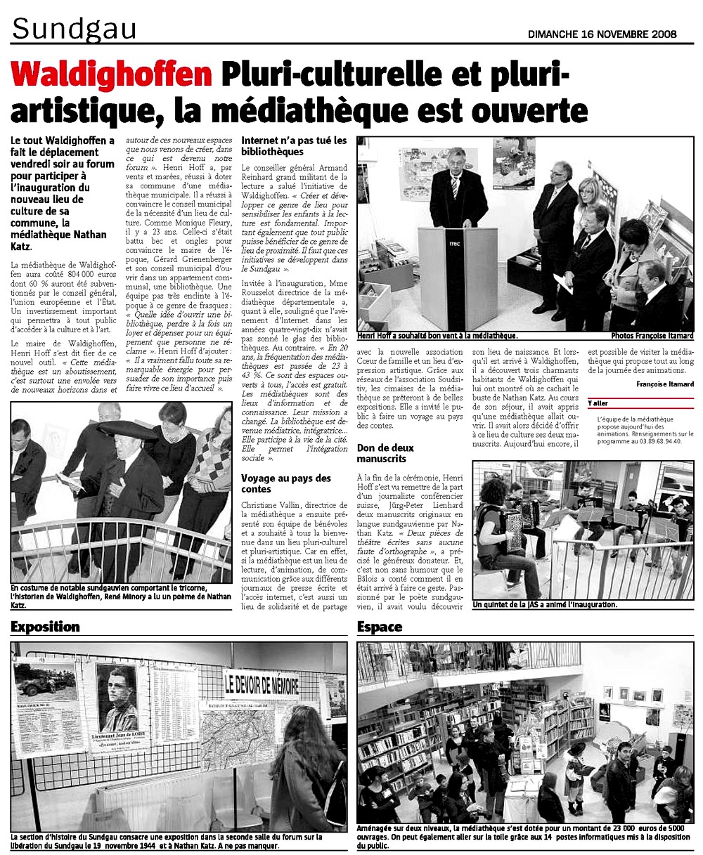 Vous êtes ici : Accueil Flashback Reportages 2008 Documents pour inauguration Article l'Alsace