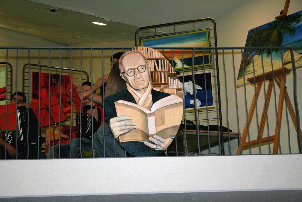 La JAS (Jeunesse Accordéon Sundgau) joue, un peu cachée par Nathan Katz (médaillon prêté par la famille Schrutt, propriétaire de la maison natale de N. Katz)