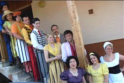 La Compagnie Mich'min se présente sur un escalier