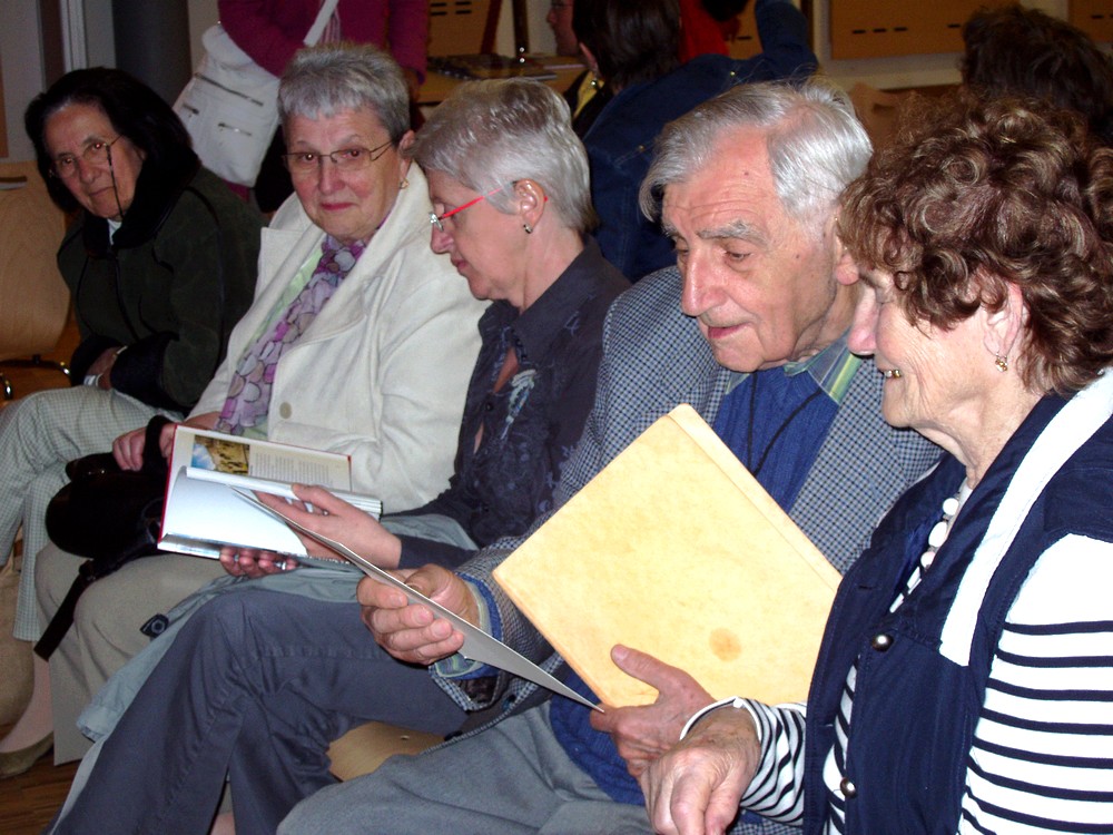 Ici, le père Umbrecht regarde le diplôme de pélerin de François Vogt