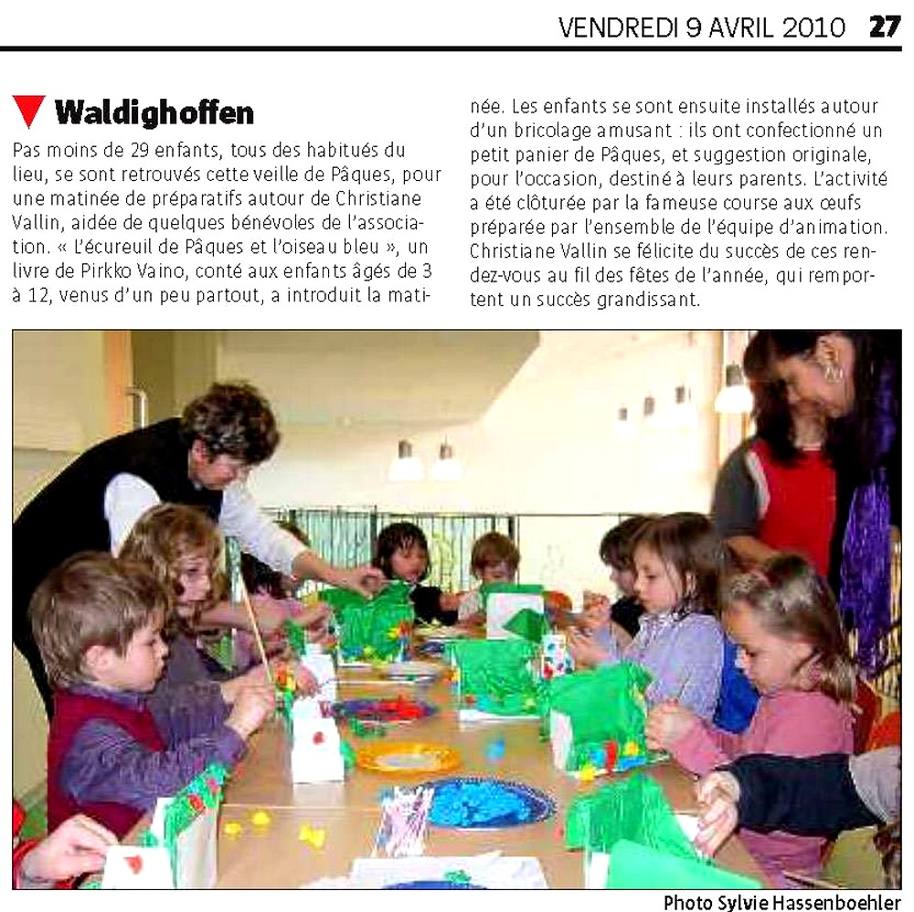 Article dans le journal l'Alsace du 9 avril 2010 pour la médiathèque de Waldighoffen